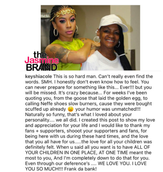 Our condolences go out to Keyshia Cole and the rest of Frankie Lons’ family at this time.