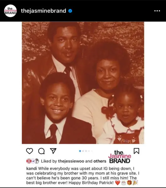 Kandi Burruss opened about her late brother Patrick Riley on Instagram as she and her family celebrated the 30th anniversary of her older brother’s passing.