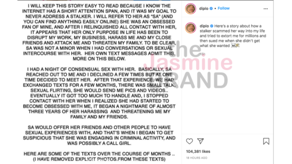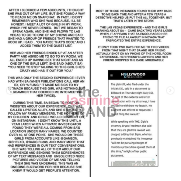 Diplo continued with his story and claimed that even after he blocked his accuser she continued to find ways to contact him.