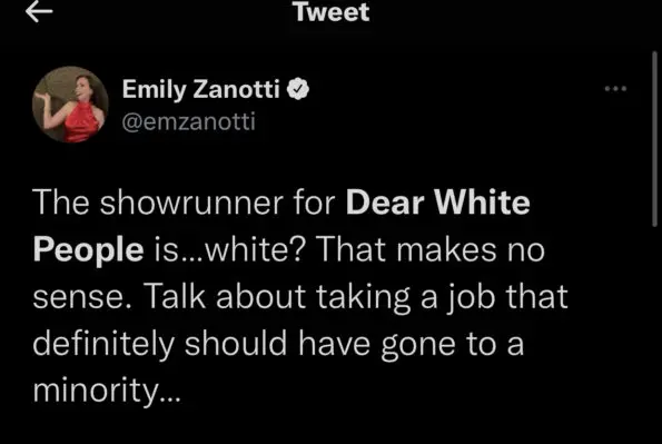 “I was hired to write on Dear White People by Justin Simien before season one. After season 3 I was promoted by Justin to run the show with him for season 4. I was the show’s only white writer.”