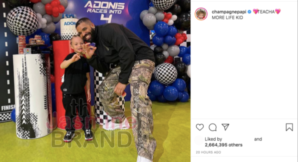 Drake posted another picture from the Adonis’ party, which appears to have been a racing theme.
