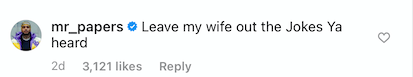 “And for those of u coming at my husband, Mr. Papers, he did real n***a s***. What a husband is suppose to do…”