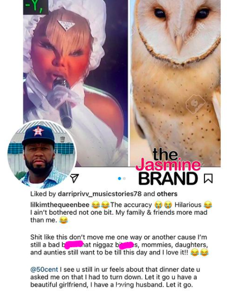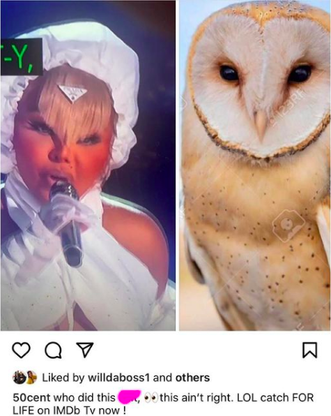 In July, 50 Cent made fun of Lil Kim’s look at the BET Awards as critics compared her to an owl.
