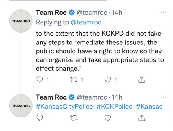 As previously reported, this past September Team Roc filed a lawsuit against the Kansas City police department over alleged misconduct. As part of the suit, Team Roc is seeking access to documents that would explain complaints filed against individuals in the department’s investigative unit. The organization is also requesting documents connected to the training and supervision of officers. The lawsuit claims the KCKPD said it would provide a number of documents but has,