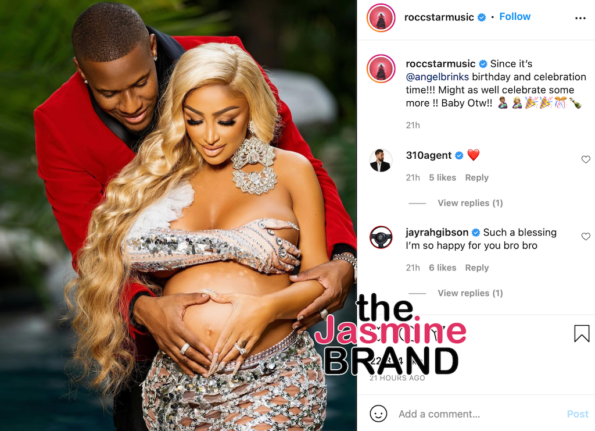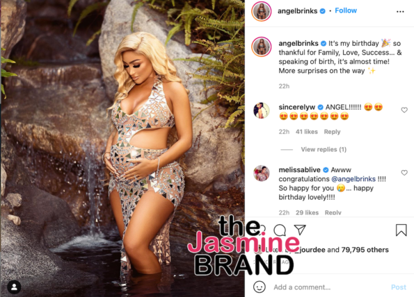 “Since it’s @angelbrinks birthday and celebration time!!! Might as well celebrate some more !! Baby Otw!!”