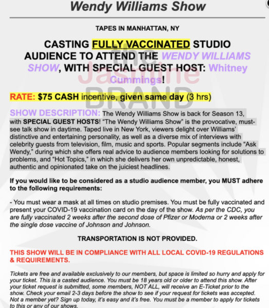 It’s also offering $75 to audience members, that will be paid the same day. Those who participate must be fully vaccinated.