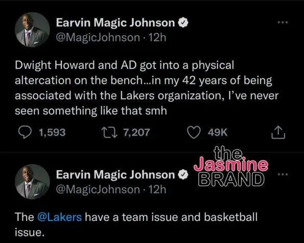 “Dwight Howard and AD got into a physical altercation on the bench…in my 42 years of being associated with the Lakers organization, I’ve never seen something like that smh.”