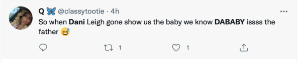 “So when Dani Leigh gone show us the baby we know DABABY isss the father.”