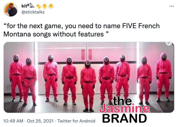 French Montana is firing back at internet trolls. One Twitter user posted a picture of the popular Netflix show Squid Game and wrote the caption: