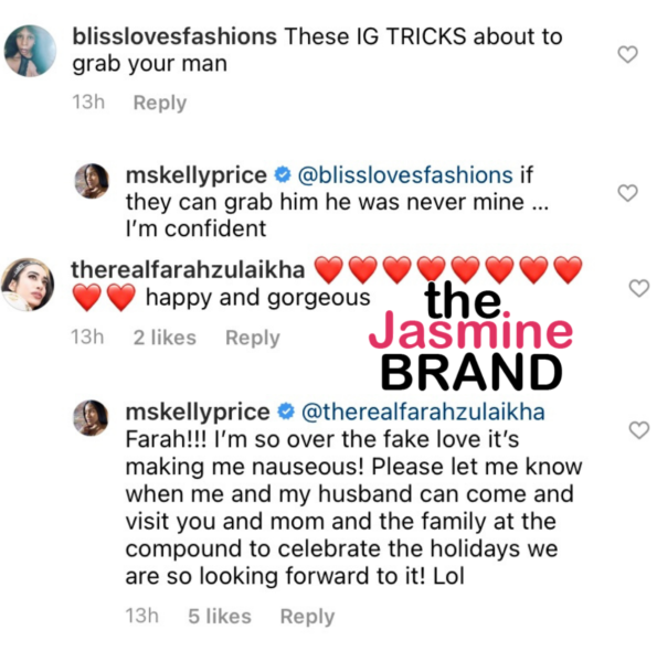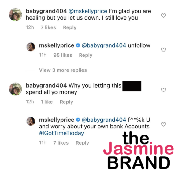 In the comments section, one user suggested she’d been MIA because of her husband. Kelly Price respond and said,