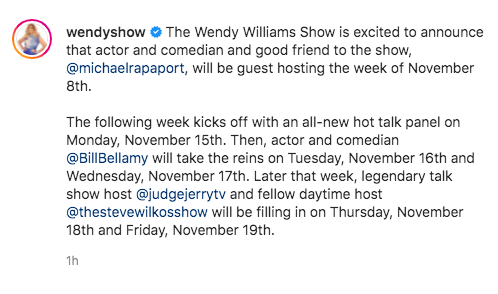 “The Wendy Williams Show is excited to announce that actor and comedian and good friend to the show, @michaelrapaport, will be guest hosting the week of November 8th.