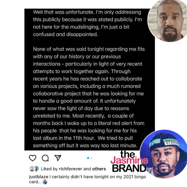 Jusblaze responded to Kanye with a lengthy social media message.