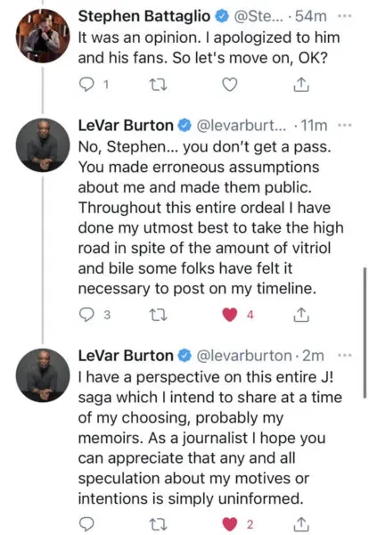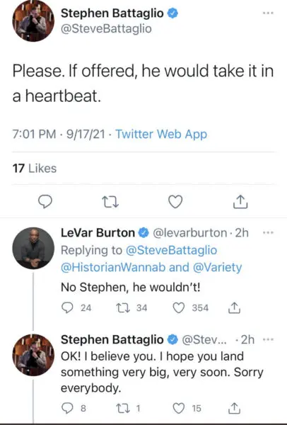 Although LeVar Burton has moved on from his request, many fans have not. Over the weekend, he replied to a fan who still wants the Star Trek star to host Jeopardy. Burton responded to the comment: