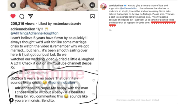 Unfortunately, not everyone seemed to enjoy the personal moment Adrienne Bailon shared online. One social media user left a negative comment under the video about why they think Adrienne doesn’t have any children with her husband yet. They wrote,