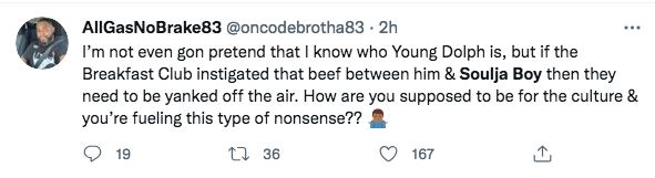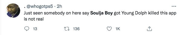 Shortly after his passing a clip of Soulja Boy’s comments about Dolph in The Breakfast Club began trending, along with his name.