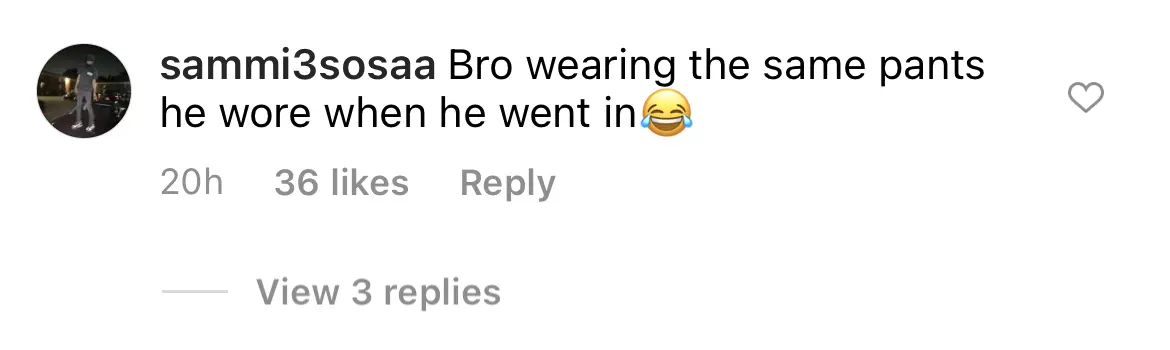 “Bro wearing the same pants he wore when he went in.”