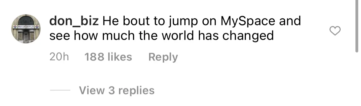 “He bout to jump on MySpace and see how much the world has changed.”