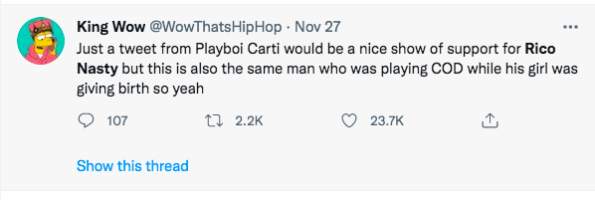 Playboi Carti has yet to speak on the booing situation or Rico Nasty’s latest concerning comments. However, following her cryptic tweets, a lot of celebrities and fans have shared their support and love towards Rico Nasty online.