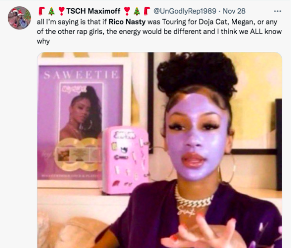 As previously reported, On Nov. 6 Rico Nasty was booed on stage during a tour stop in Los Angeles by Playboi Carti’s fans. Video footage surfaced online of the ‘Money’ rapper reacting to the boos. While on stage she can be heard screaming into the mic,