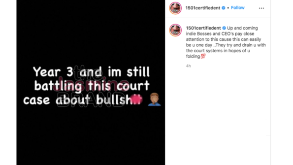 “Up and coming indie Bosses and CEO’s pay close attention to this cause this can easily be u one day… They try and drain u with the court systems in hopes of u folding [red 100 emoji].”
