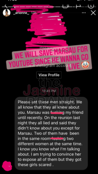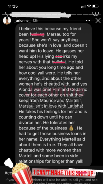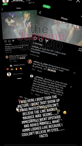 It now seems that Arionne Curry wants to share a little of her side of the story and expose the other men from ‘Love & Marriage: Huntsville’ for being cheaters as well. The boutique owner recently uploaded a few cryptic posts to her Instagram stories making some serious allegations. In one post she shared a throwback image of the men from the OWN series and accused Maurice Scott of cheating on his wife Kimmi Grant Scott.