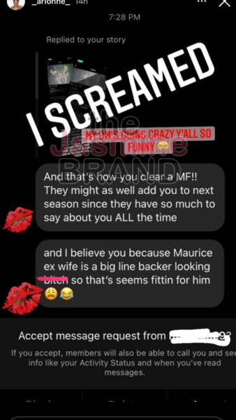 Maurice Scott doesn’t seem to be scared of Arionne Curry’s allegations. The reality star/businessman took to his own IG stories and dared Curry to name the person he allegedly cheated on his wife with.