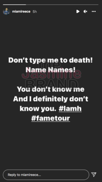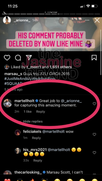 Curry also added proof to her claim that she was there that night the alleged cheating took place. She shared a screenshot of a comment left by Martell Holt seemingly pointing to the fact she was the one who took the picture of the ‘Love & Marriage: Huntsville’ men that night.