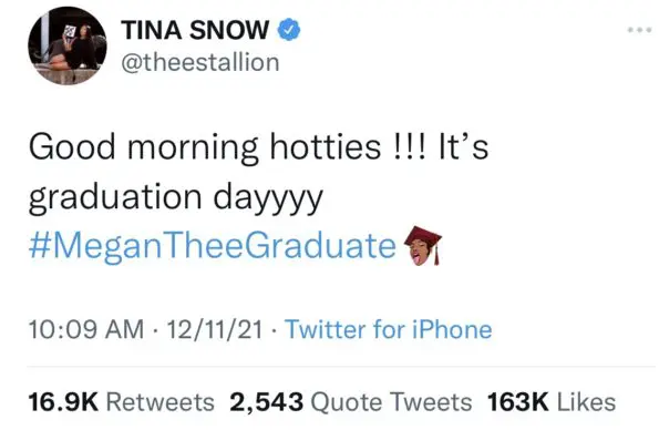 “#MeganTheeGraduate”