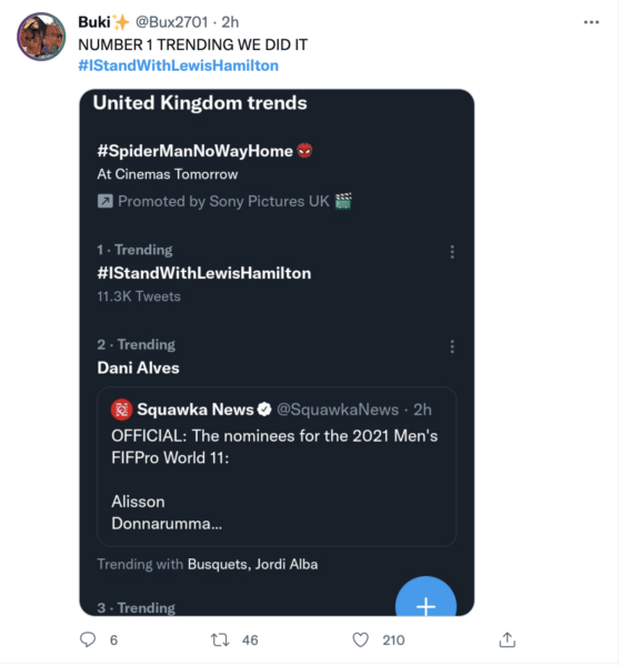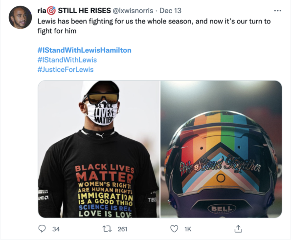 “NUMBER 1 TRENDING WE DID IT #IStandWithLewisHamilton.”