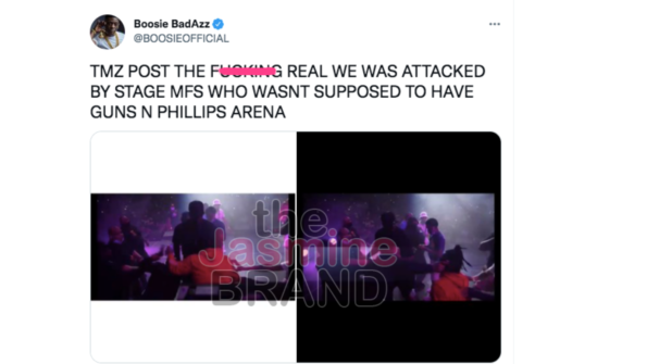 “TMZ POST THE F*CKING REAL WE WAS ATTACKED BY STAGE MFS WHO WASNT SUPPOSED TO HAVE GUNS N PHILLIPS ARENA”