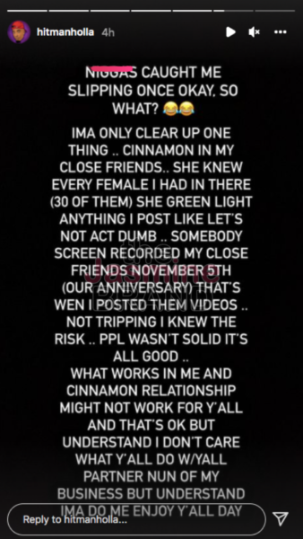 Today (Dec. 15) Hitman Holla, born Gerald Fulton, Jr., became a trending topic after explicit videos featuring his girlfriend Cinnamon were reportedly leaked online. This entire incident started last month during Hitman Holla, 33, and Cinnamon’s 5 year anniversary. As a way to celebrate, the Wild ‘N Out star shared intimate videos of himself and his girlfriend to his ‘close friends’ feature via IG. However, despite only sharing the risqué footage to a select few people, Hitman Holla and Cinnamon’s videos have recently surfaced on Twitter and other social media platforms for the entire world to see.