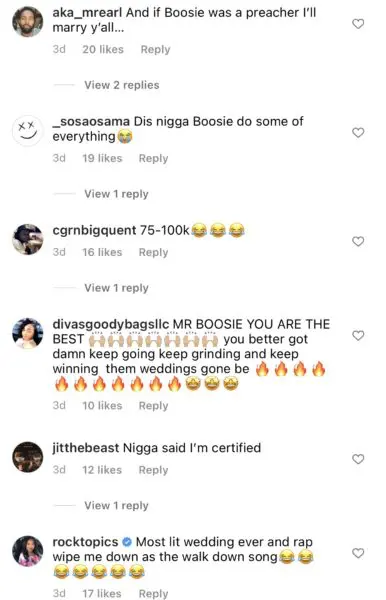 “I can marry you. If you want Boosie to marry you, let me know. If you want Boosie to marry you, I got my mother***in’ license.… Y’all holla at me. This my new thing. I’m marrying couples now- $75,000 to $100,000.”