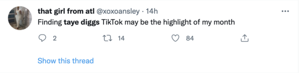 “Finding taye diggs TikTok may be the highlight of my month.”