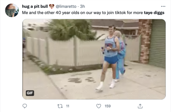 “Me and the other 40 year olds on our way to join tiktok for more taye diggs.”