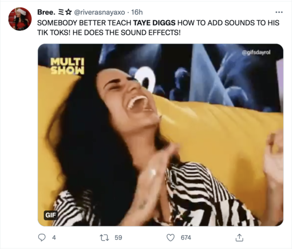 “SOMEBODY BETTER TEACH TAYE DIGGS HOW TO ADD SOUNDS TO HIS TIK TOKS! HE DOES THE SOUND EFFECTS!”