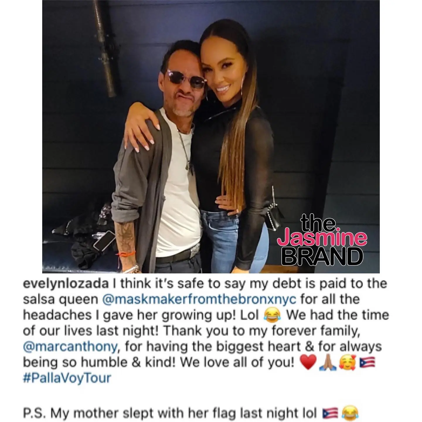 Evelyn Lozada spent the weekend fulfilling one of her mom’s dreams, attending Marc Anthony’s concert. The former Basketball Wives star shared on social media, that her mom had never seen the mega singer in concert and this would be her first time seeing him live.