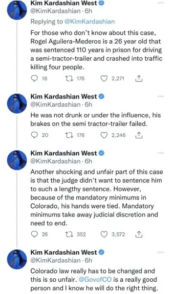Kim Kardashian Shows Support For Man Sentenced To 110 Years For Colorado Truck Crash Where Four People Were Killed