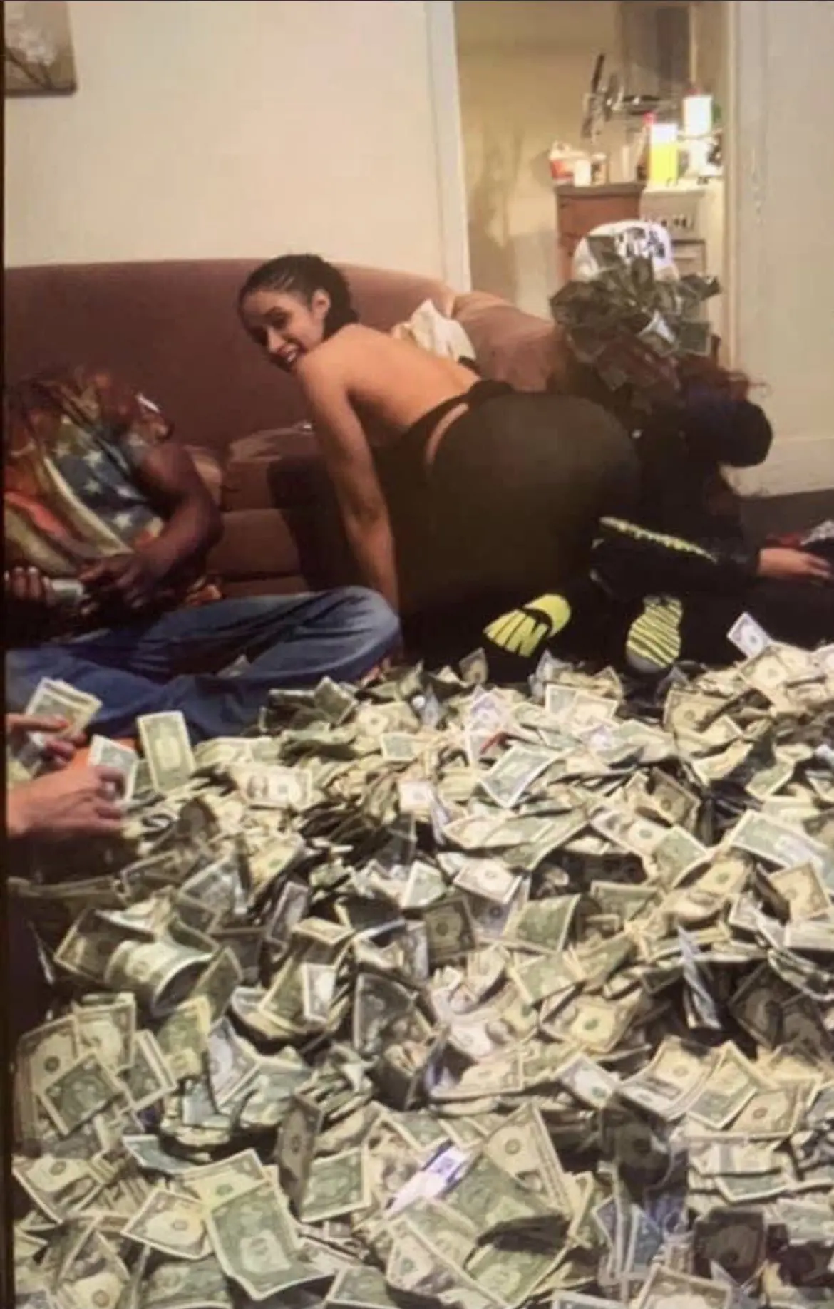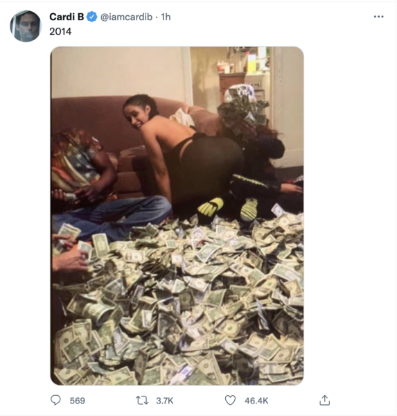 Soaring rap star Cardi B, 29, recently threw it back to 2014 with an old picture of herself posing on top of a giant mound of cash. The tweet was simply captioned: