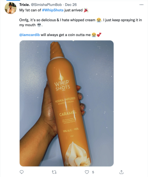 Her latest venture is “Whip Shots,” a line of Vodka-infused whipped cream, which launched in Dec. The creative dessert product is available in mocha, caramel, and vanilla, and has already won fans over.