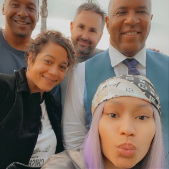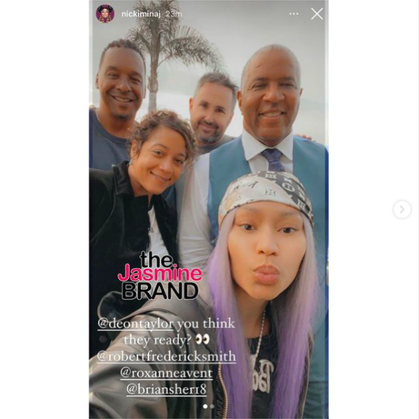 Yesterday (Dec. 28) Nicki Minaj, 39, revealed via her Instagram stories that she’s working on a new project with famed film director Deon Taylor, 45, and other heavy hitters within the entertainment industry. The ‘Tusa’ rapper shared an image of herself posing with Deon Taylor, businessman Robert Frederick Smith, 59, producer Roxanne Avent, 45, and Brian Sher, who is Quality Control’s President of Quality Films. Nicki Minaj captioned the exciting post,
