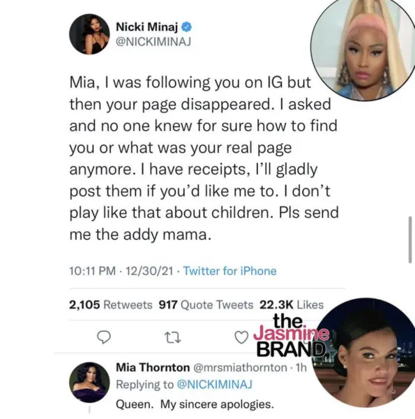 Mia Thornton Apologizes To Nicki Minaj After Accusing Her Of Excluding Her Children From Christmas Gift-Giving