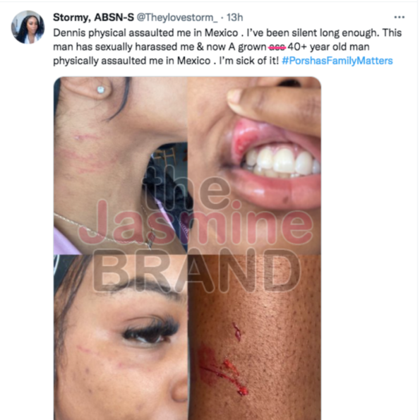 “Dennis physical assaulted me in Mexico. I’ve been silent long enough. This man has sexually harassed me & now A grown a** 40+ year old man physically assaulted me in Mexico . I’m sick of it! #PorshasFamilyMatters”
