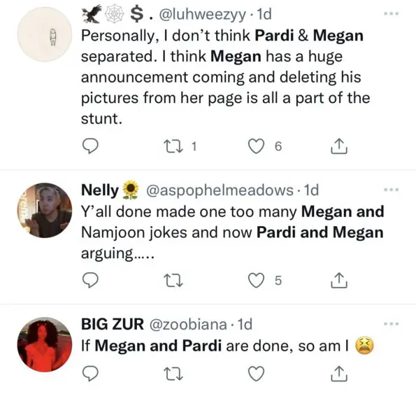 Pardi also celebrated a birthday last Wednesday (Dec.29), and surprisingly, Megan The Stallion, 26, did not give him a b-day shout on social media, giving fans even more of a reason to speculate. See reactions below: