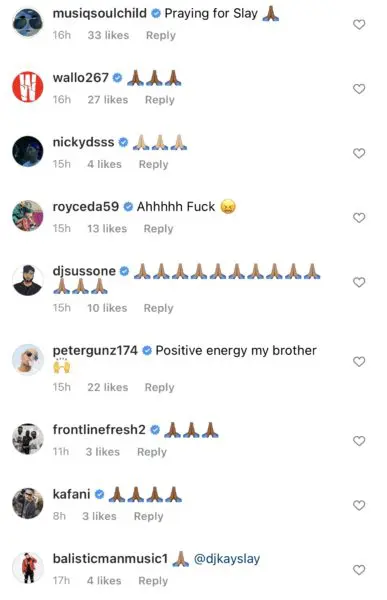 Almost immediately, the prayers and kind words started pouring in for DJ Kay Slay. Various DJ’s and music artist such as Uncle Murda, Twista, Peter Gunz and Musiq Soulchild commented sharing their well wishes.
