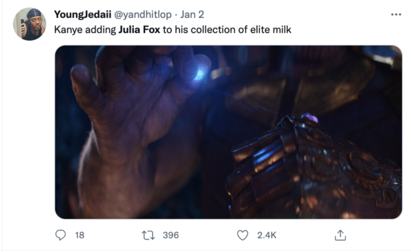 “Kanye adding Julia Fox to his collection of elite milk.”