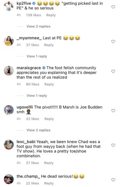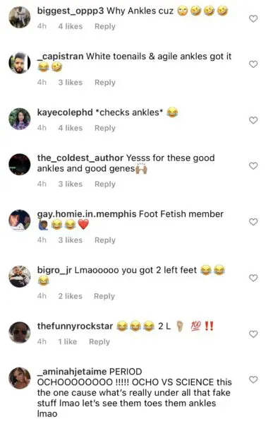 “I’m not one to really judge women on what they feel they need to do to enhance their appearance and feel better about themselves. I don’t really care… I’m an ankle and foot guy. Your feet gotta be on point and your ankles gotta be to a f**ing tee.