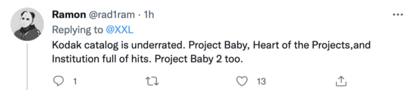 “Kodak catalog is underrated. Project Baby, Heart of the Projects,and Institution full of hits. Project Baby 2 too.”