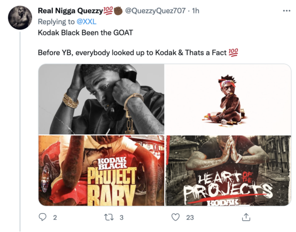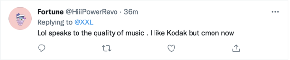 “Lol speaks to the quality of music . I like Kodak but cmon now.”