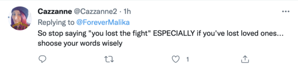“So stop saying ‘you lost the fight’ ESPECIALLY if you’ve lost loved ones… shoose your words wisely.”