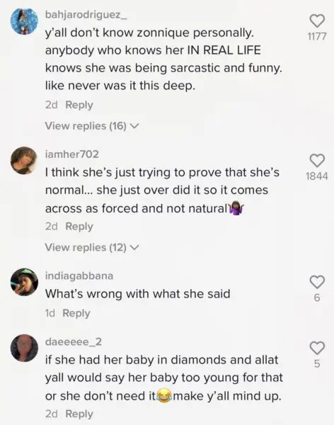 Some social media users felt Zonnique was speaking very aggressively about a 1-year-old toddler, while others applauded Zonnique for not overly spoiling her daughter and felt people were picking on her. See reactions below: